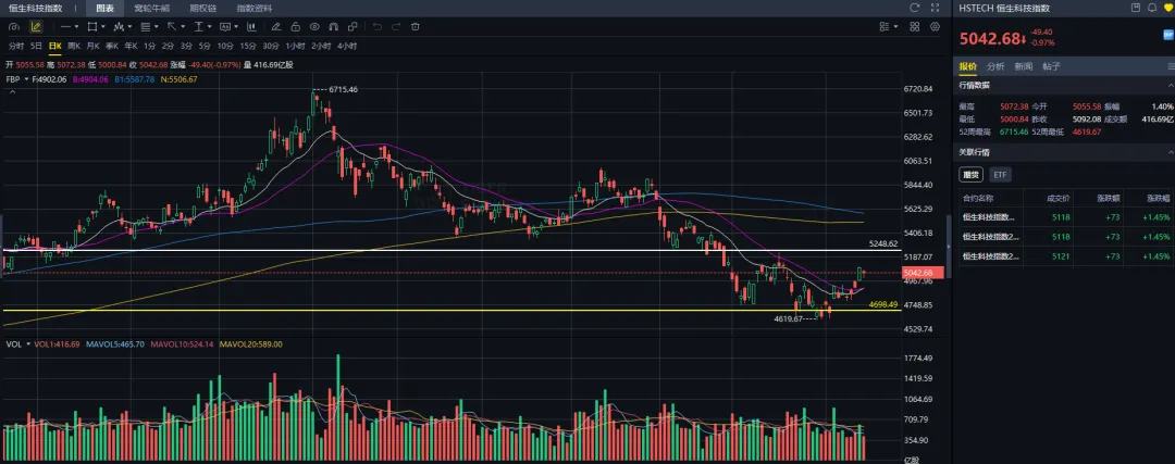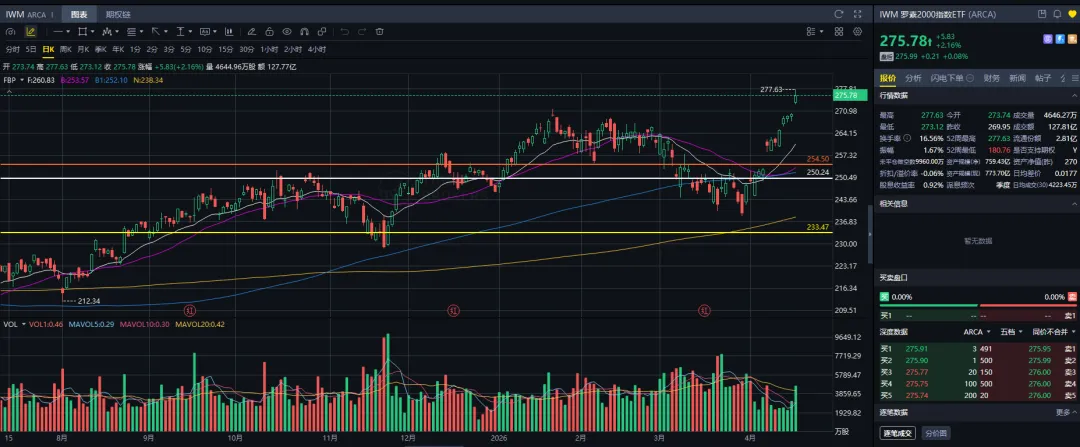 3、标普500指数日K线上升形态 :标普指数比其他两个指数强势,上周已经突破了半年线,新高后没有任何压力位,所以本周复盘没什么好猜测的。