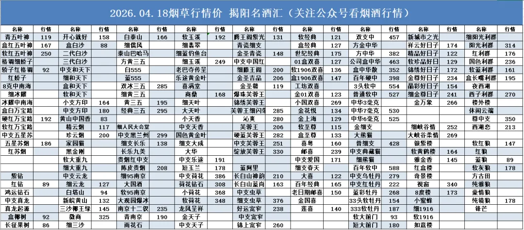 上联缤•BIN、拉菲每日行情价发布4月18日