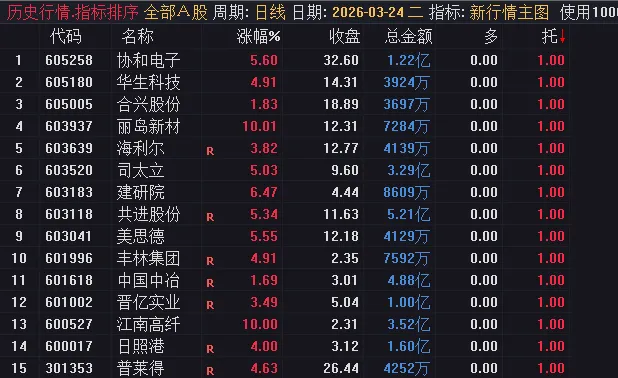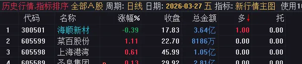 主图指标除了可以用于主图外,还可以用于排序,用于排序更加方便,我们排序是在盘后排序的。