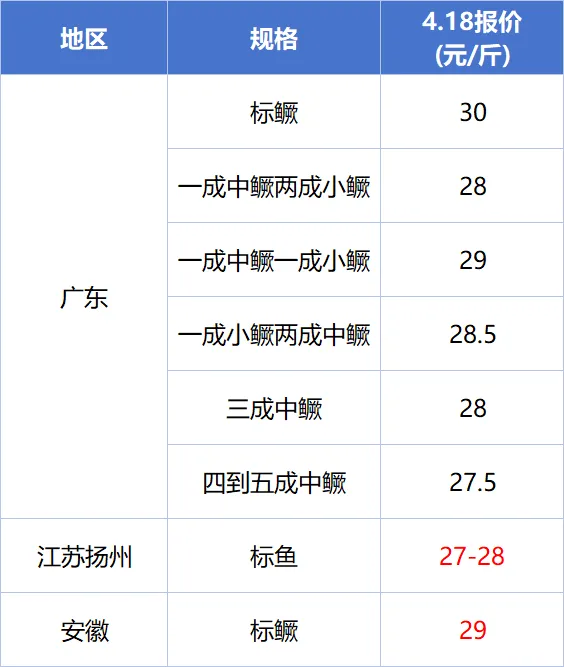 2026年4月18日多品种塘口报价|南美白对虾、罗氏沼虾、淡水澳龙、小龙虾、鳜鱼、加州鲈、黄颡鱼、生鱼、鳗鱼、大黄鱼、牛蛙等,覆盖多品类,一站式查阅。