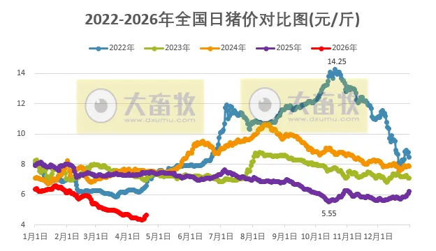 其中2022年同期在6元区间震荡上涨,2023年同期跌破7元,2024-2025年这2年同期仍均在7元区间横盘震荡,而今年2026年此时在4元区间震荡上涨。