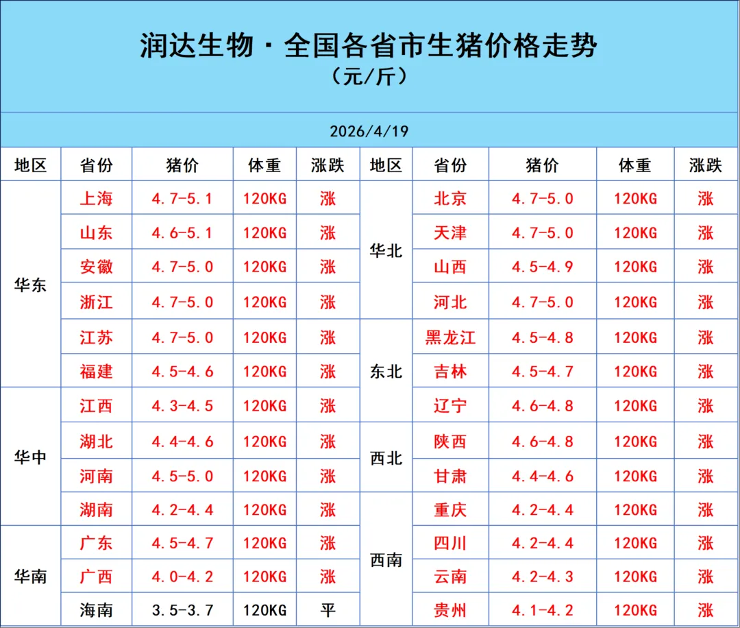 2026年4月19日明日猪价行情:一片红,全面上涨!
