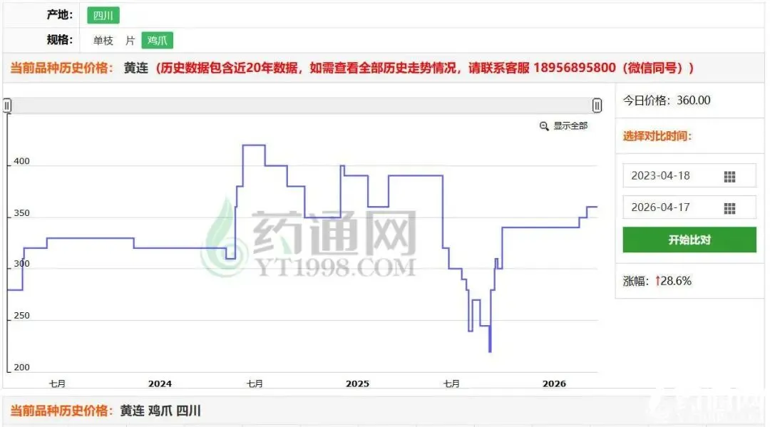 黄连,作为清热解毒类的经典中药材,在主流药材市场走出了一波亮眼的涨价行情,年初市场普遍看跌的预期被彻底打破,新货价格冲高至380元,饮片价格更是突破400元,成为中药材市场的“爆款”品种。看似突如其来的涨价背后,并非单纯的资本炒作,而是种植周期、供需失衡、成本抬升等多重因素共同作用的结果,其后续行情走势也成为行业关注的焦点。