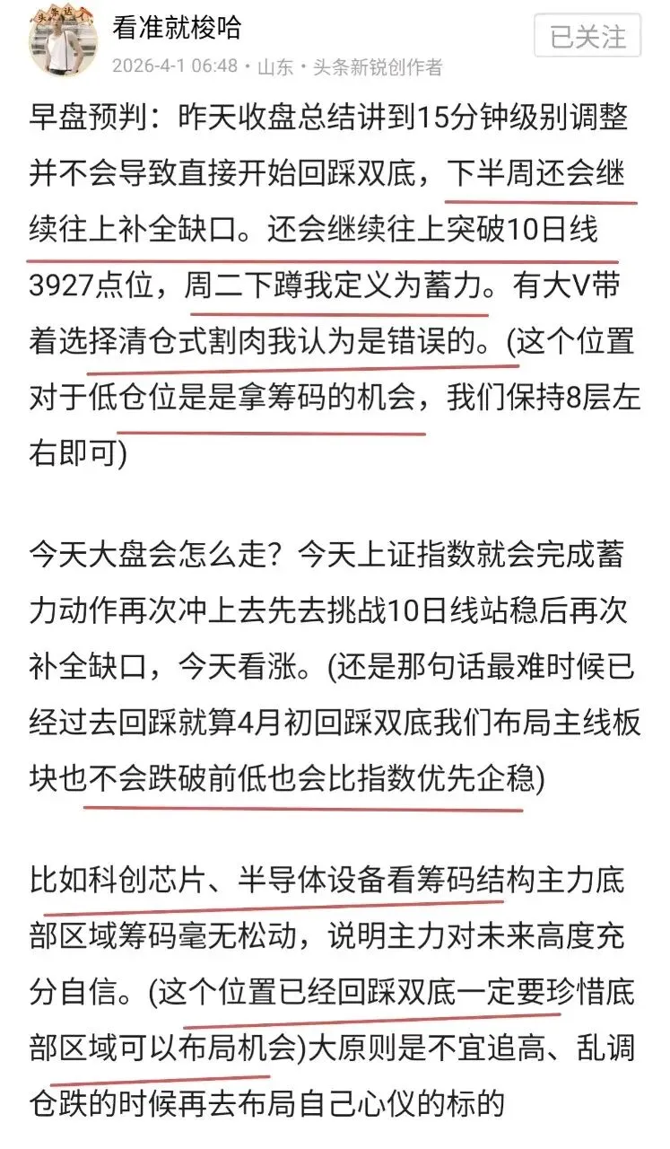 4.1假如你在黄金坑没有布局,再清明节前有不少大V带头割肉,我再次提醒这个位置是低仓位拿筹码机会,不要丢掉底部区域布局筹码。