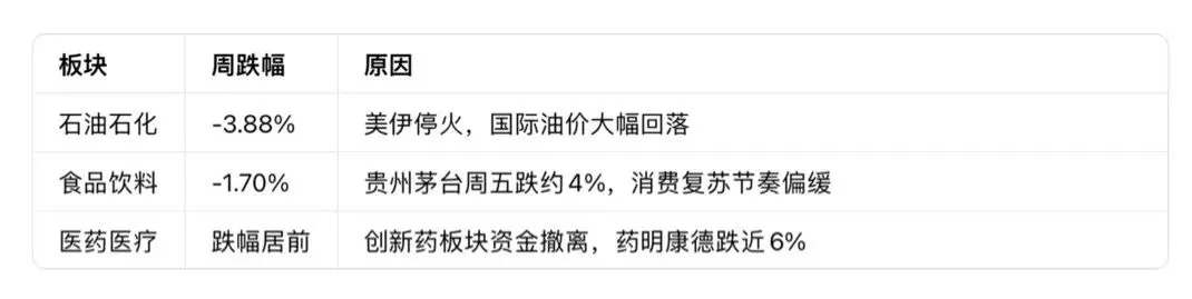 · 医药/生物科技:周初强势(映恩生物-B涨10.81%),周五全面回调(药明康德跌5.9%)。