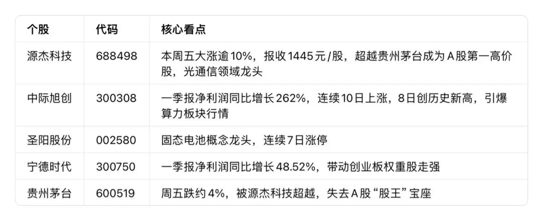 一周股市行情|创业板创11年新高,纳指创33年最长连涨,茅台跌下神坛,源杰科技成A股新“股王”!本周股市核心复盘(附下周前瞻)
