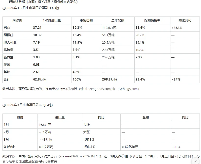 CIF报价4,500美元/吨的牛肉,汇率从7.43降到6.82,人民币成本直接降低约2,745元/吨(降幅约8.2%)。相当于巴西活牛涨价6%的压力,被汇率升值吃掉了一大半。