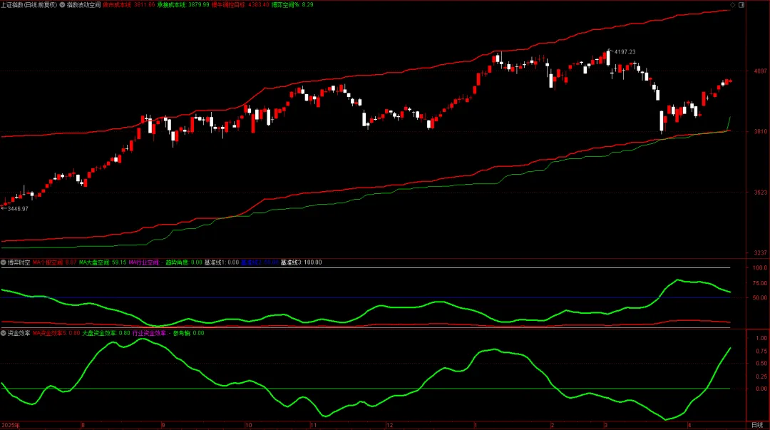 这意味着:系统性赔率依然有利。大盘既未进入上轨极值区(空间接近0%)的过热状态,也未跌穿下轨(空间超100%)的恐慌区域。中枢下部的定位,为精做个股提供了较为安全的市场环境。