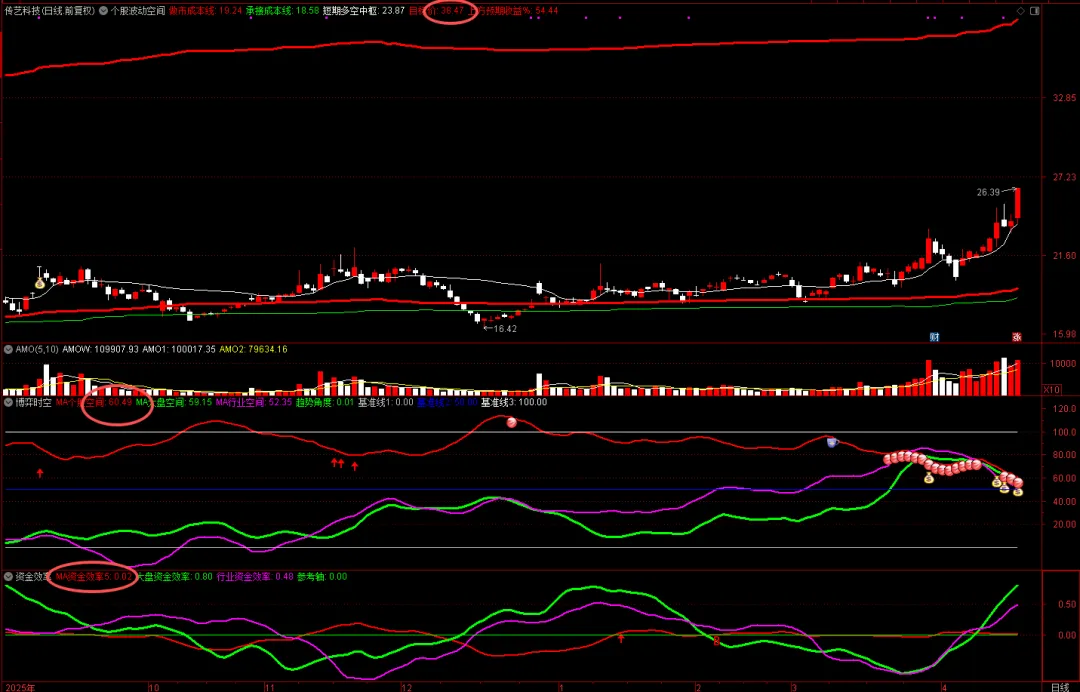 · 宏景科技(301396):当前价格已超出时空上轨29.63%,进入空间透支区域。效率趋势能否持续加速,是判断其能否在高位维持的关键。