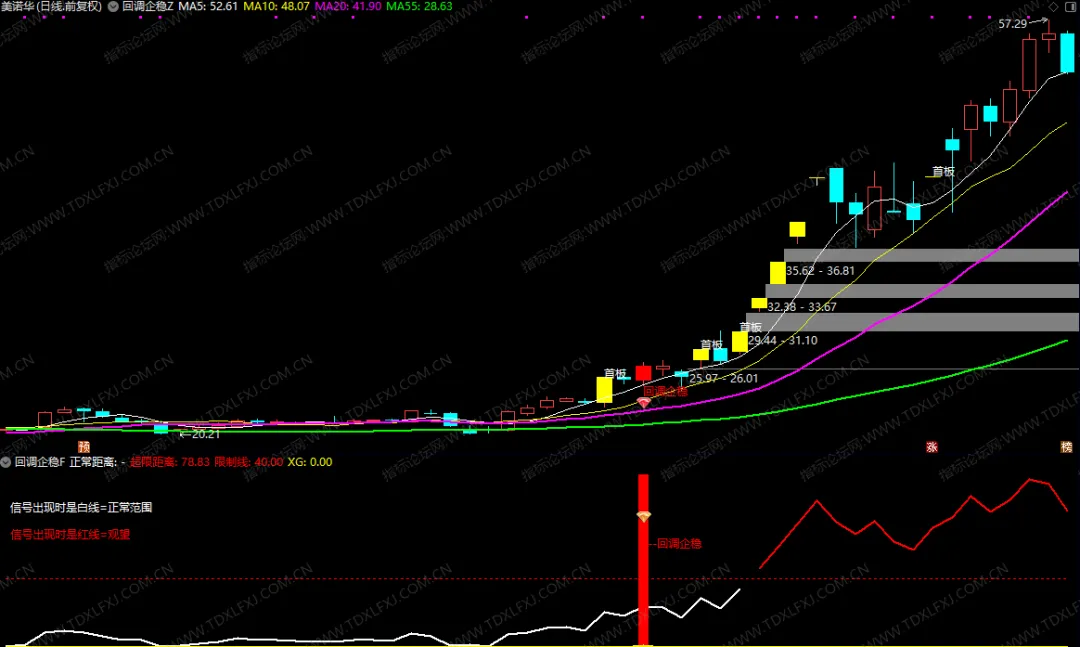 指标核心逻辑基于“通过量化模型,辅助识别出现首板后的动能延续性,技术形态辅助指标”,旨在辅助识别在上升途中的X盘行为。信号经过严格筛选,出现频率适中,适合结合大盘环境与其他技术指标综合研判。