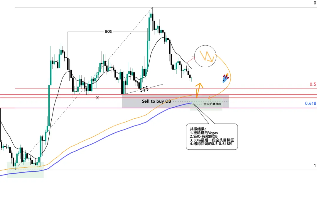 30M时间框架下(SMC评估+斐波那契拉扩展目标)