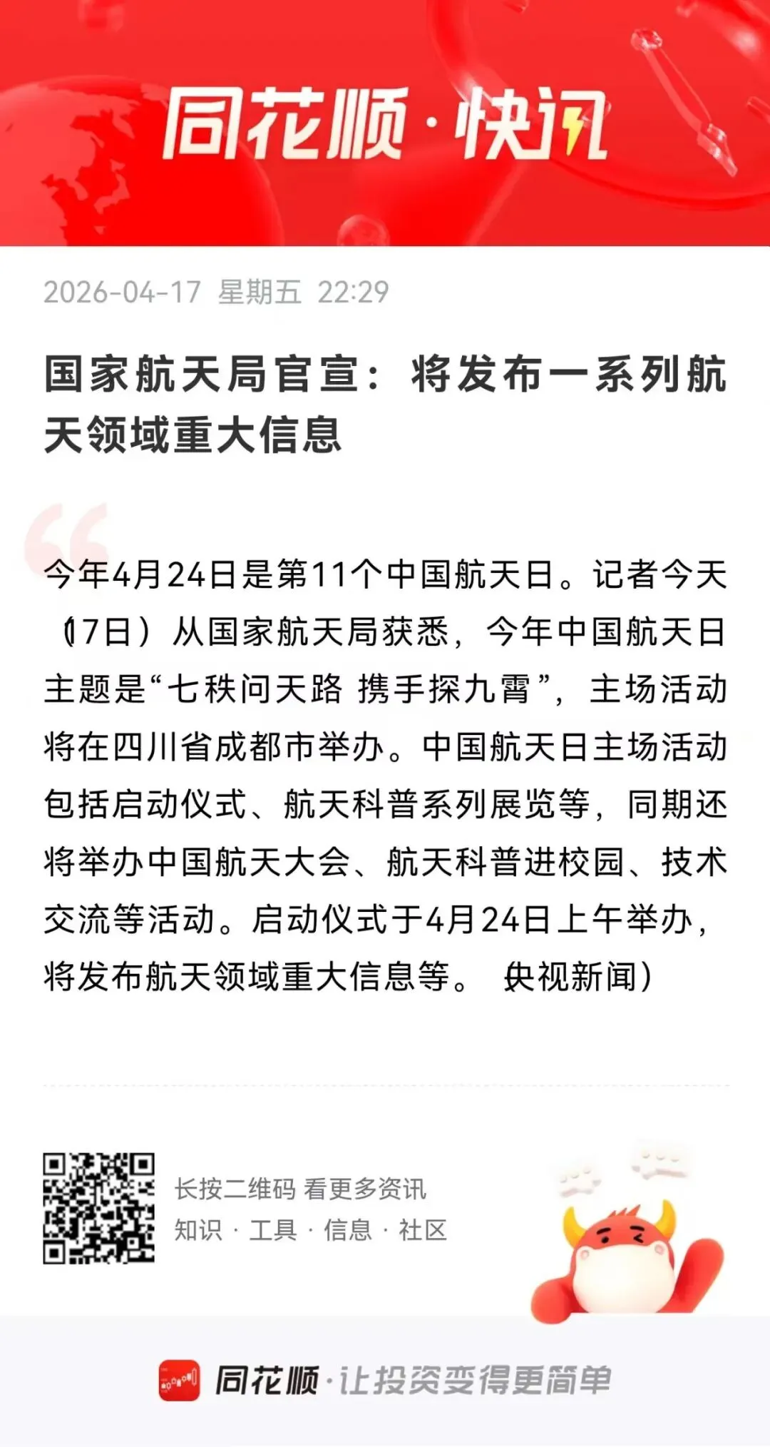 行情的核心抓手,在于科技为核、“上天入海”双轮驱动的三大主线。科技牛市加速演绎,4月17日光芯片龙头源杰科技盘中最高触及1460.08元/股,超越贵州茅台新晋A股第一高价股,年内涨幅超15倍,国泰海通等机构持续看好其AI算力核心的成长空间。与此同时,“上天入海”主线蓄势待发:浙商证券研报指出2026年为中国商业航天发展元年,行业2025年核心产业规模已突破1万亿元,增速持续领跑;国信证券测算VLCC龙头招商轮船2026年Q1净利润中枢30亿元,同比大增247%,油运超级周期的业绩兑现确定性极强。