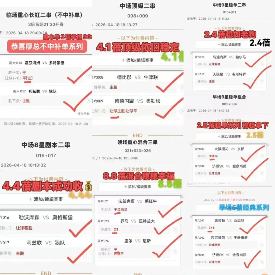 兄弟们,红黑是正常的,对了就是对了,错了就是错了,发哥不会为了面子去改战绩去做一些不道德的事!每天后台的家人们都在支持发哥,那发哥肯定会负起责任带领兄弟们走上一条正确的道路,可能路上会有些许的坎坷,但是我们总体都是一路向上的!!!一切的出发点都是为了给兄弟们一个可以带来持续效益的避风港,有的人会问——为什么发哥可以这么自信,那是因为发哥知道,我们每场比赛的结果都不是一拍脑袋决定的,所有数据都是提前48小时追踪、实时更新,用经验跟全球领先的模型带来最可靠的成果记住:盈利才是腾飞的翅膀,机会永远留给有准备的人,更留有勇气的人!实战这东西,拼的就是眼光和信任!我一直强调要有规划!每一步都精打细算!就像昨天的组合,提前锁定高含金量场次,精准预判赛果走向,避开所有陷阱,长场收益的关键!拼的从不是运气,是长期主义的规划,而能帮你们把规划落地、精准避坑!最后掏心窝的讲,没有人可以一直保持连红,但是发哥坚信,只要你跟着我稳扎稳打,一步一个脚印,胜中求稳~连胜就在眼前!如果兄弟们有不明白的赛事或者拿不定主意的比赛!都可以找发哥交流交流!🔥圈里串烧每天都有收🔥!