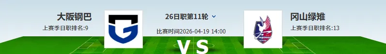 大阪钢巴本赛季重心肯定是亚冠乙了,本赛季日职作为过渡赛季,实在没有什么东西是可以争的,最近大阪钢完一场是无保国的比回来,消耗天,风山是是以逸待劳,虽然最近冈山绿雉状态不佳,但是本赛季客场也仅仅输一场比赛,还算稳健,且客场面对大阪钢巴没有输球记录,支持冈山客场全身而退。方向:让负