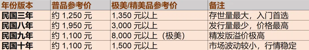 像新疆版、云南版这些地方特色版别,工艺有早晚,普通品相大多在1800到3500之间转悠。