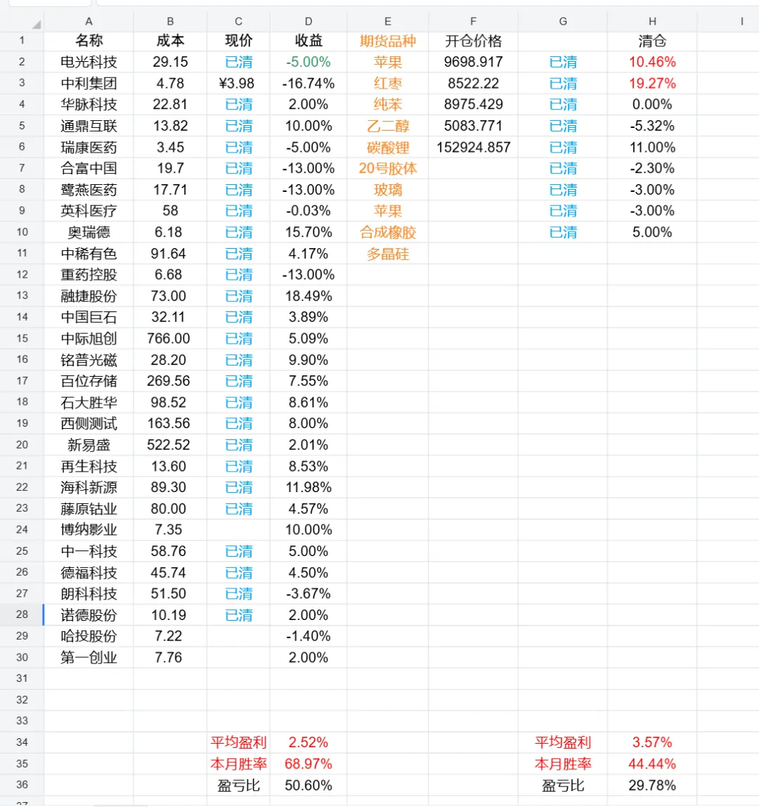 本月行情小结,本月胜率68.96%,平均盈利2.5%