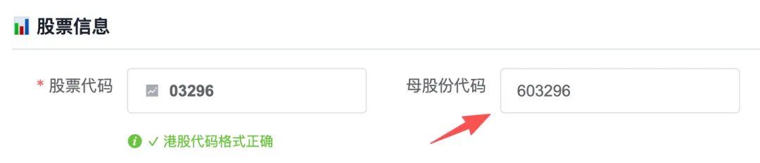 1、在港股新股申购分析页面中找到股票代码对应的表单项,在其右侧增加一个新的表单项,名称叫母股份代码,文本框类型,非必填。