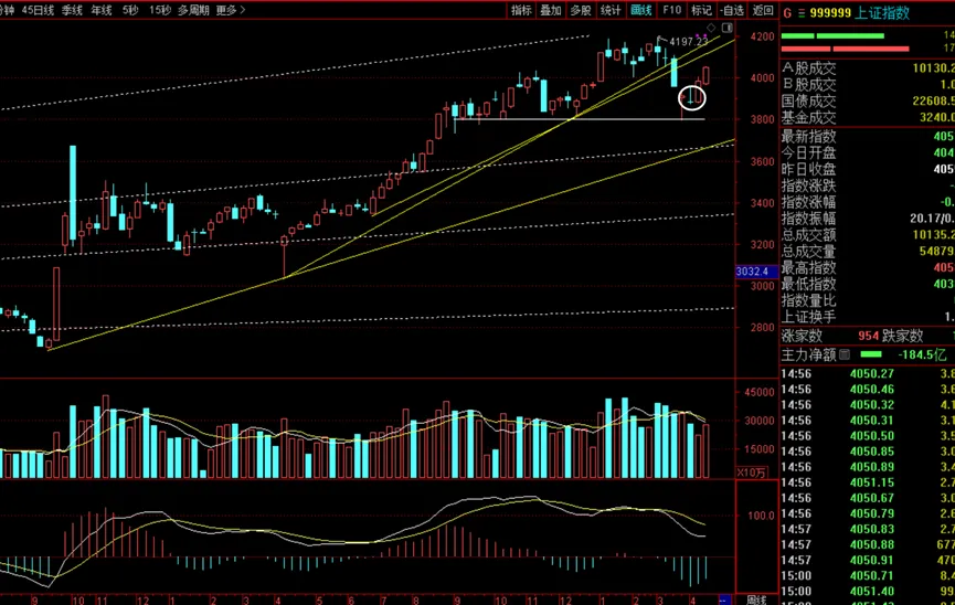 大盘指数此前的预判是横盘调整到16号再涨,现在可以说是直接涨到了16号,而且没有调整的意思,不过恒指有调整的迹象。若不调整的话会持续上涨下周五24号,因为周线收上涨揉搓线不能只收一根阳线,压力位4115。