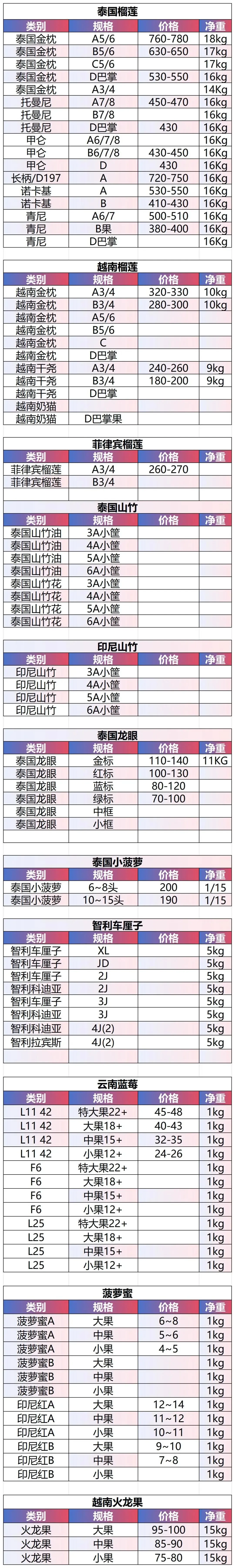 2026/04/19广州江南市场榴莲行情参考对比(广州友商统计)
