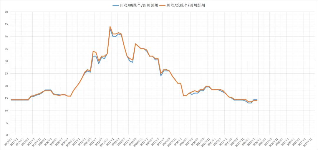 产地可供货源有量,近期商家采购积极性不高,货源走动有所放缓,统货根据质量,要价不一,价格在14-16.5元之间。