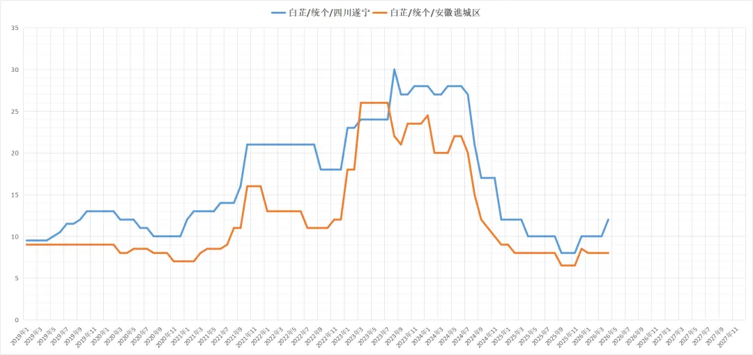 四川遂宁市新桥镇白芷走动进一步显迟