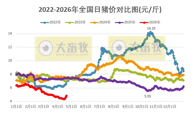 其中2022年同期在6元区间震荡上涨,2023-2025年这3年同期均在7元区间横盘震荡,而今年2026年此时在4元区间震荡上涨。