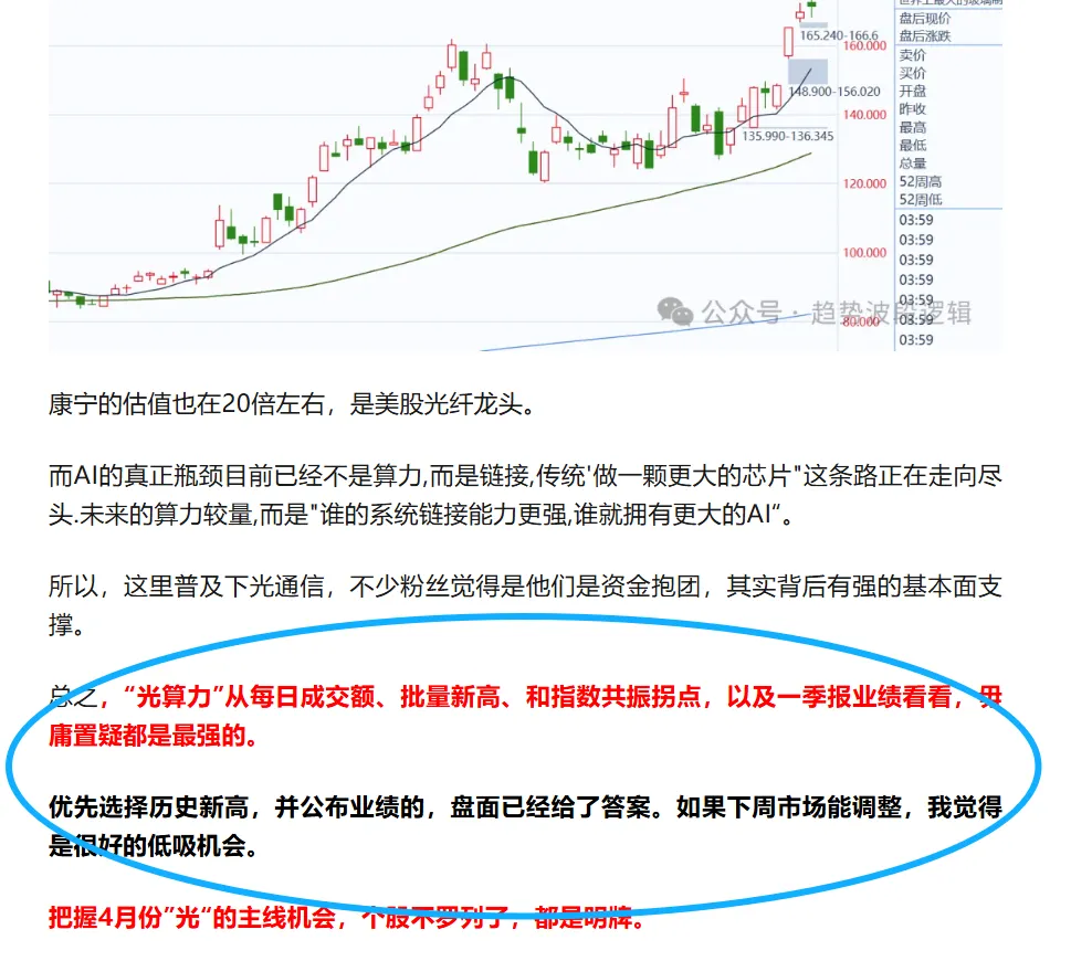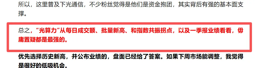 以上是上周光通信还没真正被市场认可,上周我的观点截图。