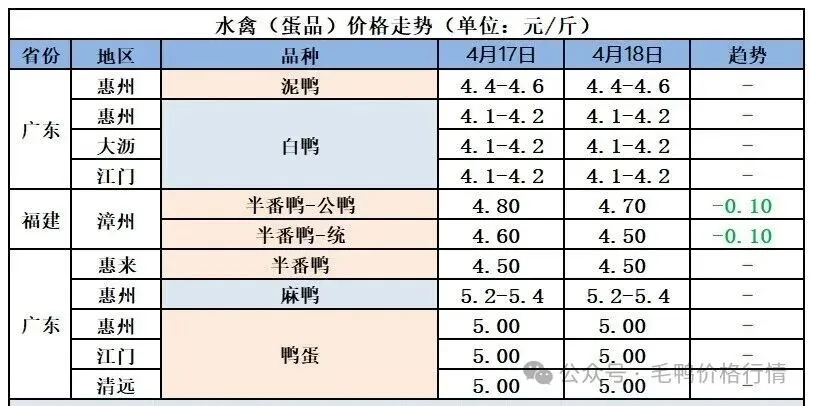 2026年4月19日全国鲜鸭蛋价格