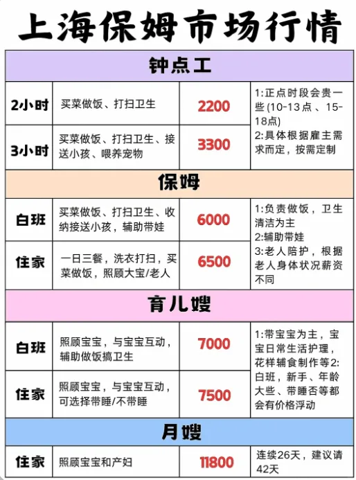 整理了超全保姆市场行情,从钟点工到月嫂,价格透明、服务清晰,直接抄作业👇