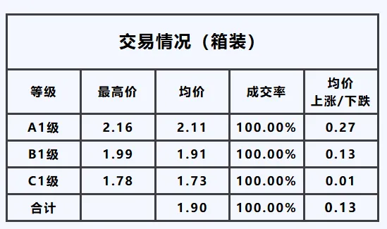 C1级——最高价1.78元/枝,均价较昨日,上涨0.01元/枝。