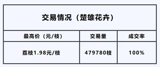 19日,楚雄花拍中心全渠道交易总量约为663040枝,今日交易量较前一交易日增加,总体购买力小幅下跌。成交率下跌,交易情况如下: