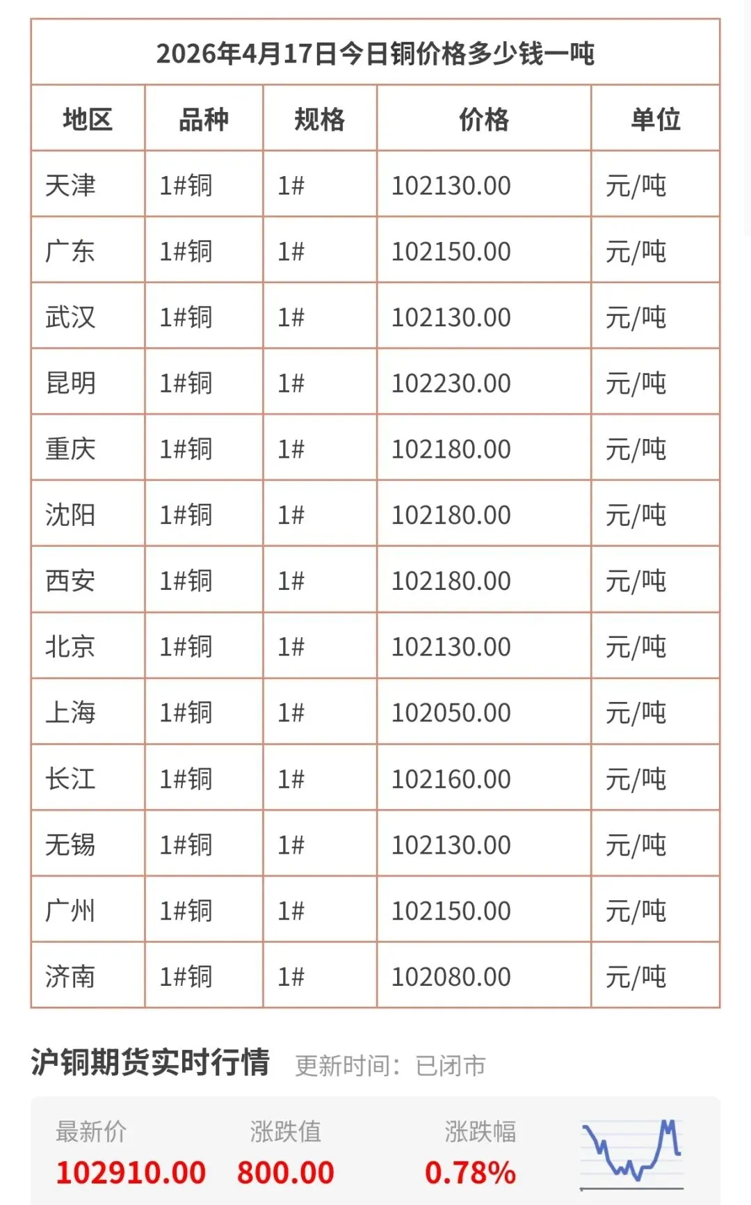 >今天铜价实时查询!现货铜价格行情走势图今日回收多少钱一斤(4月19日)