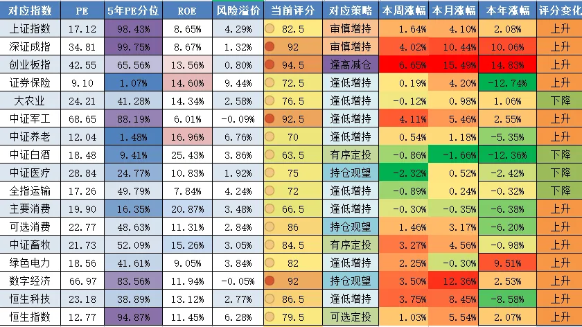 风险提示:各指数评分为个人观点不作为投资依据,投资需结合各人风险偏好和最新动态。