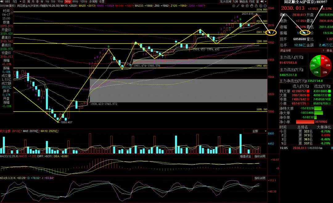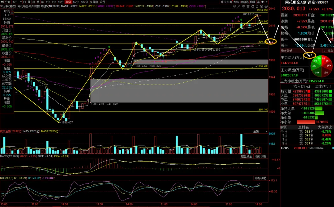 (1)同花顺全A 30分钟调整,在1990之上形成底分型做短线低吸。