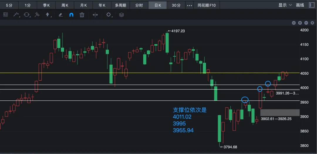 支撑位依次关注:4011.02、3995、3955.94。