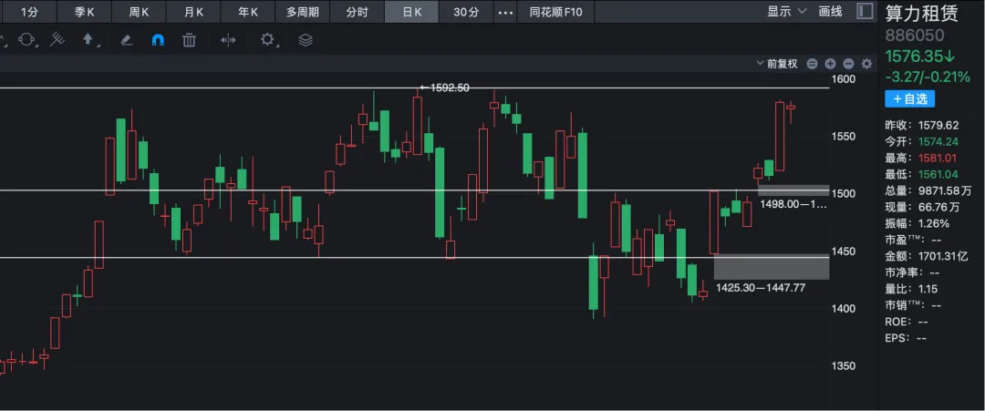 算力板块目前还没有创新高,整体大部分时间都在中枢区间内震荡整理。