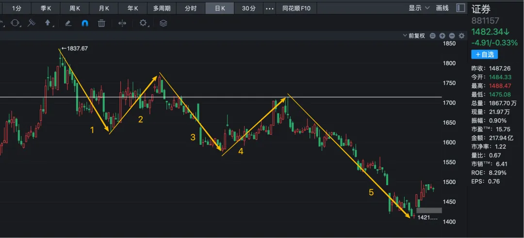 4)直接跌破且收不回去,就是明显走弱。