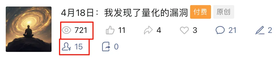 大家不妨观察一下,以玥爸平均2000左右的文章阅读量,假设按10%比例换算,这篇文章肯定是不会超过200人付费观看的,因为这是自然规律决定的。
