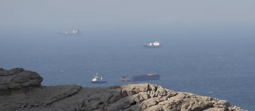 船只和油轮停泊在阿曼海岸附近霍尔木兹海峡。斯特林/路透社