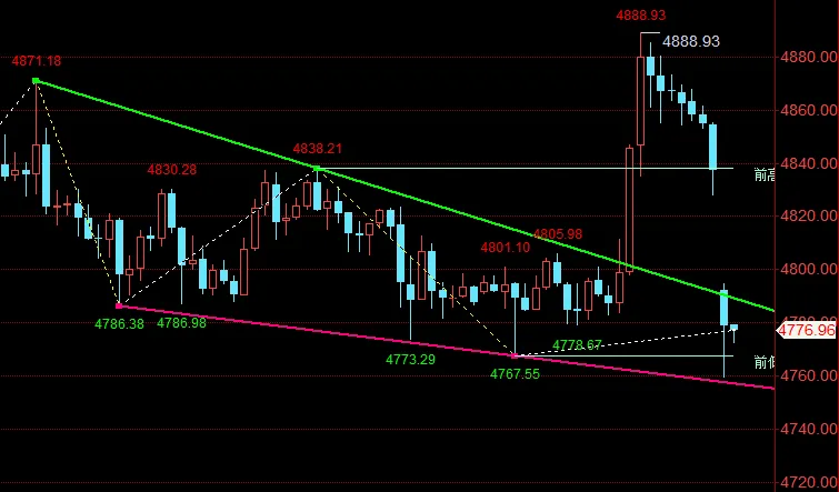 技术盘面来看,短期金价上方压力区间清晰,第一阻力区间4800—4810,进一步强阻力集中在4830—4850区域,也是前期成交密集承压位。短线实时思路是金价反弹触及4800关口附近可顺势布局空单,止损统一放置在4810上方,下方回落目标先看4770区域,短期整体以反弹高空思路为主。