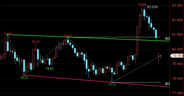技术盘面上方压力划分清晰,短期第一阻力区间80.0—80.5,第二强阻力区间81.2—82.5。日内整体操作思路优先反弹高空为主:银价反弹触及80.0附近可择机布局空单,止损统一放在80.5上方,下方回落目标先看78.5,进一步下看77.5区间。