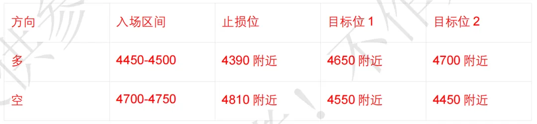 • 日线大概率维持 4450-4700 区间震荡:突破 4700 压力或反弹至 4900 附近;跌破 4450 支撑则下探 4300 前期低点。
