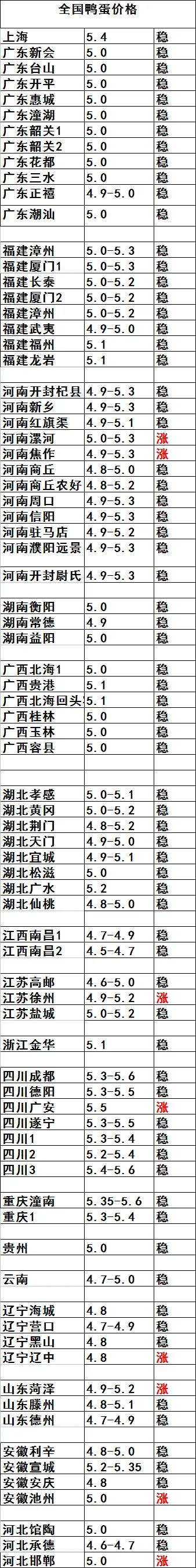 2026.4.20全国鸭蛋行情