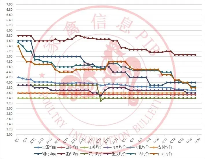 2026年3月7日-2026年4月20日主流地区白羽鸭毛鸭均价走势图