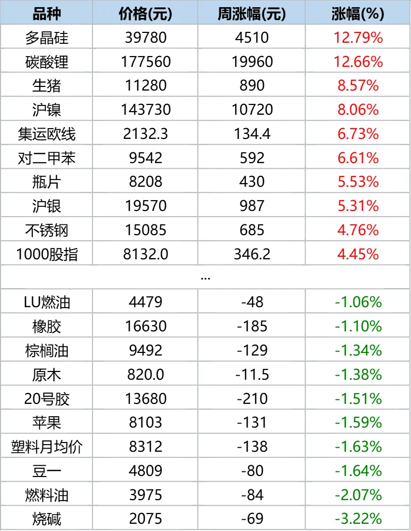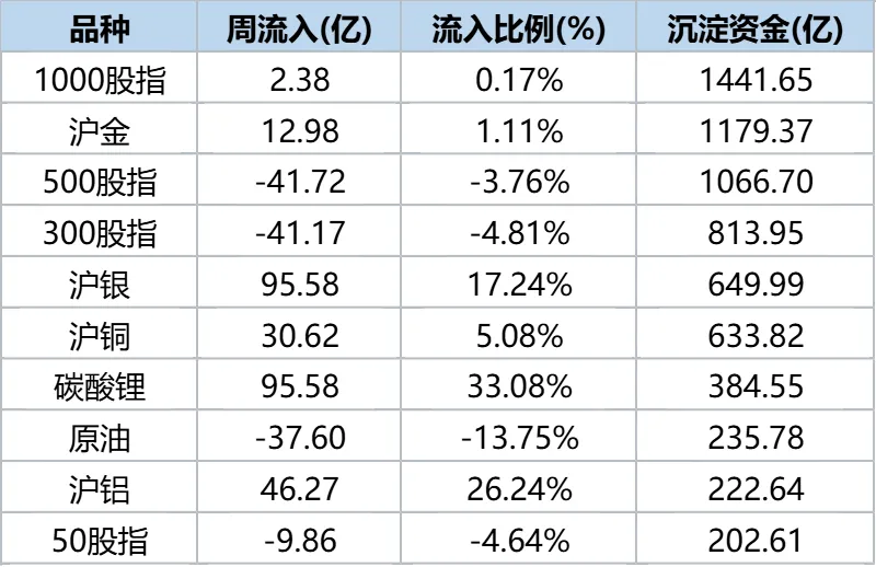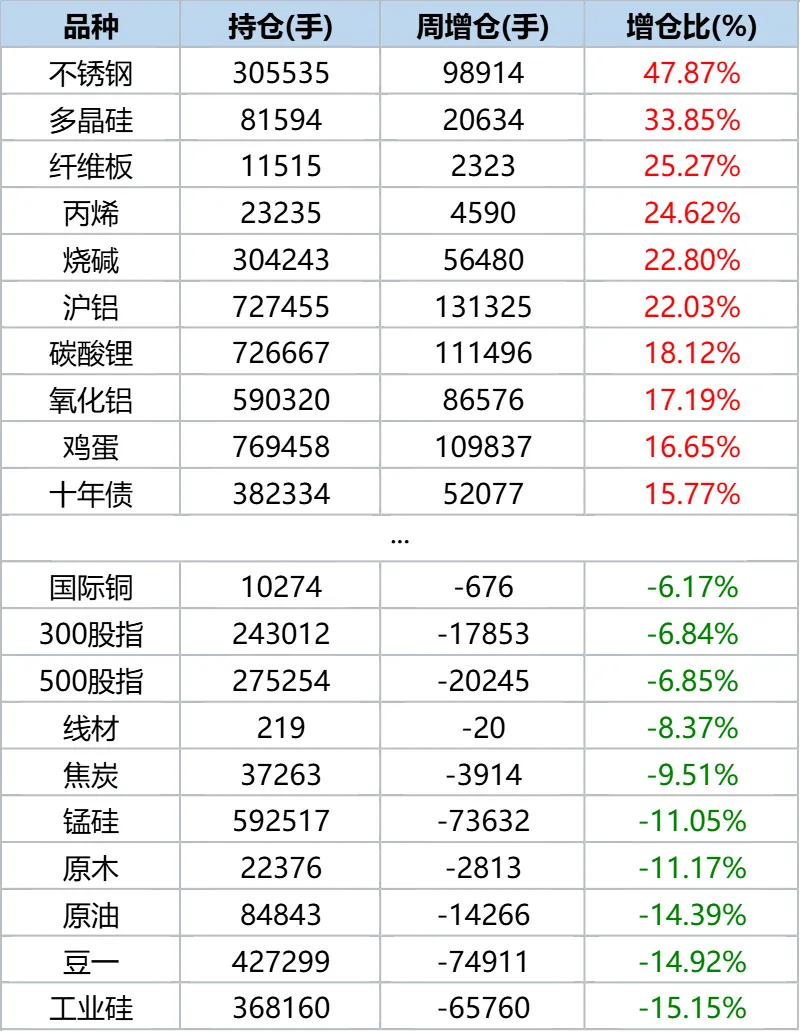 每周统计,包括沉淀资金、涨幅、增仓比、期现比、价格水位五个排名表,根据周五的最新数据做统计;每周一发布,遇节假日顺延。