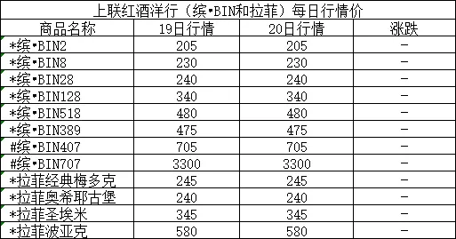 >上联缤•BIN、拉菲每日行情价发布4月20日