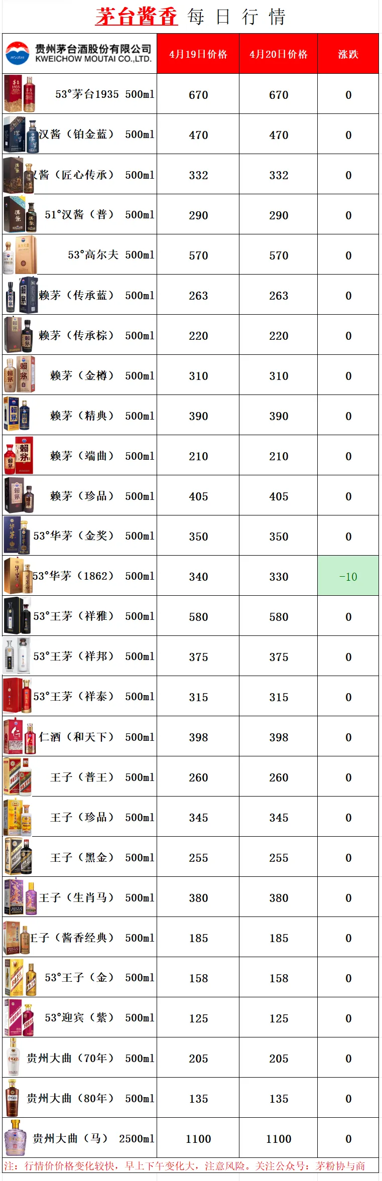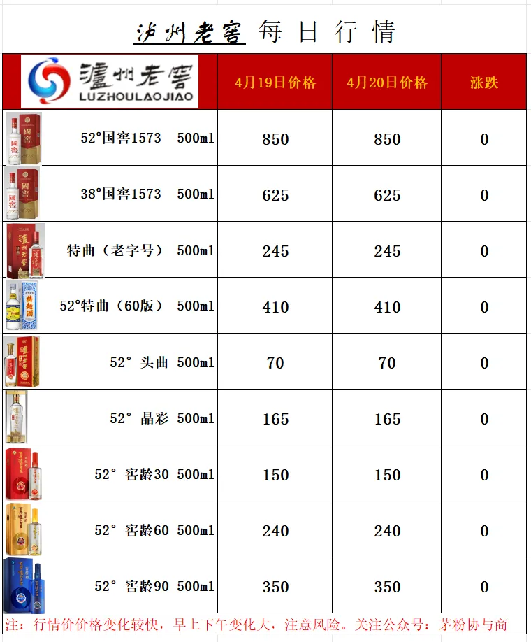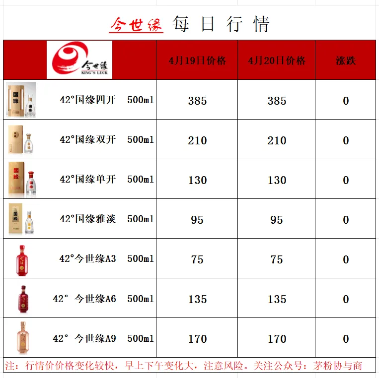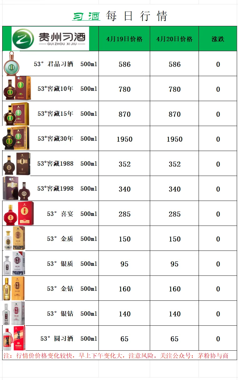 上联缤•BIN、拉菲每日行情价发布4月20日