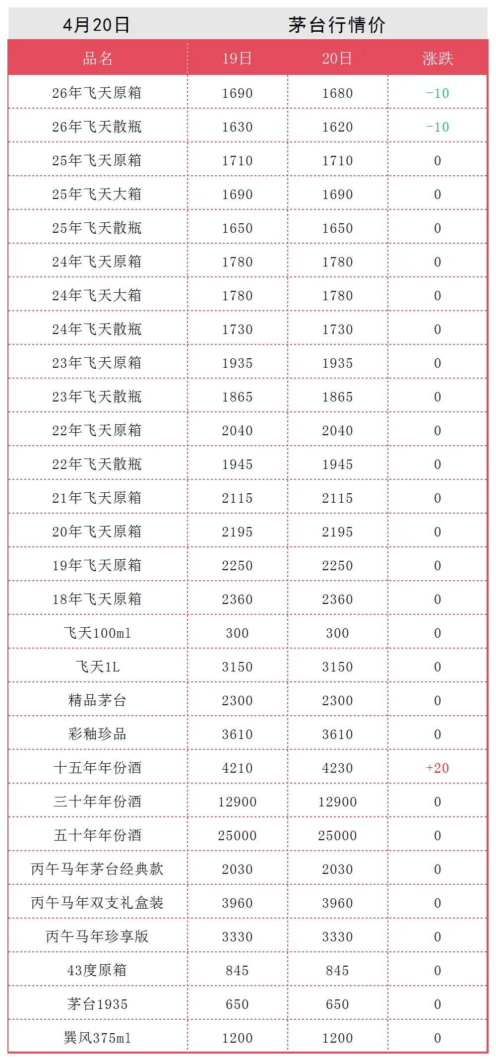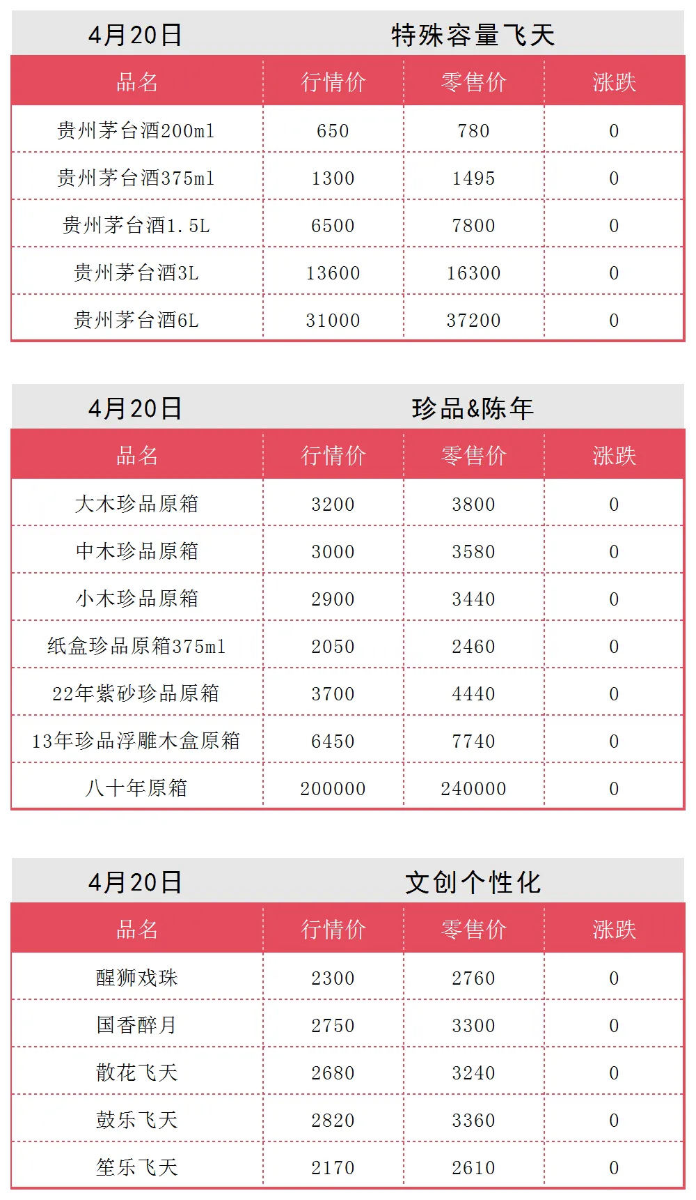 全线大涨!茅台酒4月20日行情价