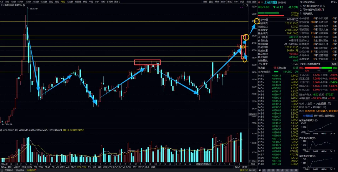 上证指数月线标注图,《3680-3820-4100-4300-4400-》4800。月结构图表上主要运行区域在3680-4100-4400之间,其中3820-4100-4300为目前阶段主波动区域,3820上方走势稳中偏强。