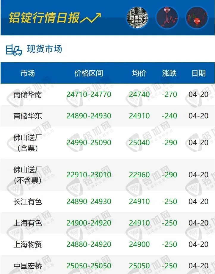 今日铝锭市场行情动态:2026 年4月20日南海灵通铝锭价行情更新!